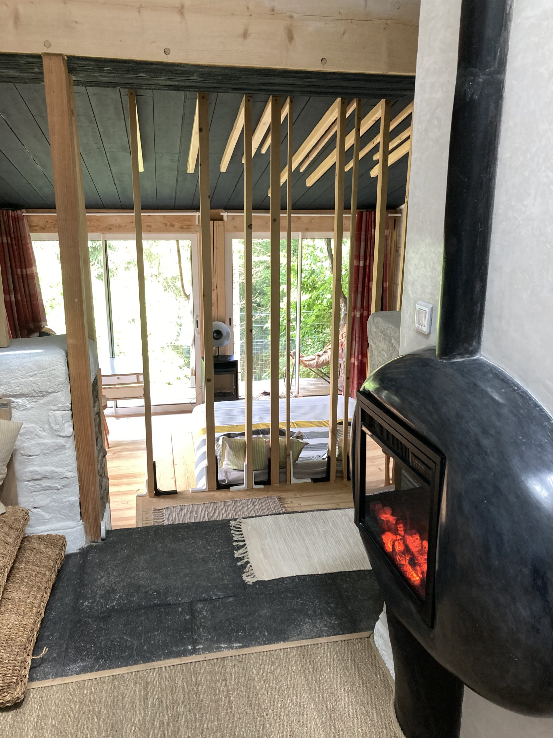 Absolument insolite et magique ! Au coeur du superbe Parc Naturel du Pilat, à 10km de St Etienne, 50 km de Lyon, « La Fortance », est un lieu paisible inoubliable qui a été façonné par Rachel, une hôte charmante et attentionnée pourvue de multiples talents, artiste, paysagiste, décoratrice, cuisinière … Elle a su transformer cette immense bâtisse en pierre au milieu de la forêt en gîte écolo, ou plutôt je dirais en trois lodges 100% naturels ! La Fortance Paradis est un lieu d’exception qui se mérite… après quelques kilomètres à travers la forêt du Pilat, une barrière, un pont, des routes en terre, vous arrivez au bout d’un chemin vers un grand jardin bucolique, avec ses différentes terrasses, ses chèvres … et une grande ferme insoupçonnée. Comment ne pas être subjugué par les chambres suspendues dans la nature entièrement réalisées par Rachel. Tout est là, l’originalité, le confort, la simplicité, « le paradis » comme on pourrait l’imaginer … .
