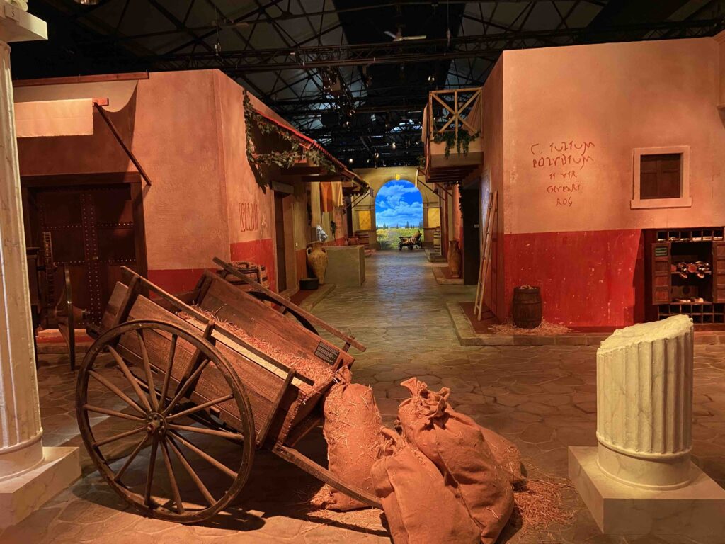 Bienvenue à l’an 79 après Jésus- Christ et à quelques1 500 m2 pour voir la célèbre cité romaine à travers ses ruelles aux pavés disjoints, ses thermes de bien-être, ses échoppes commerciales, son école et ses tavernes où se restaurer.