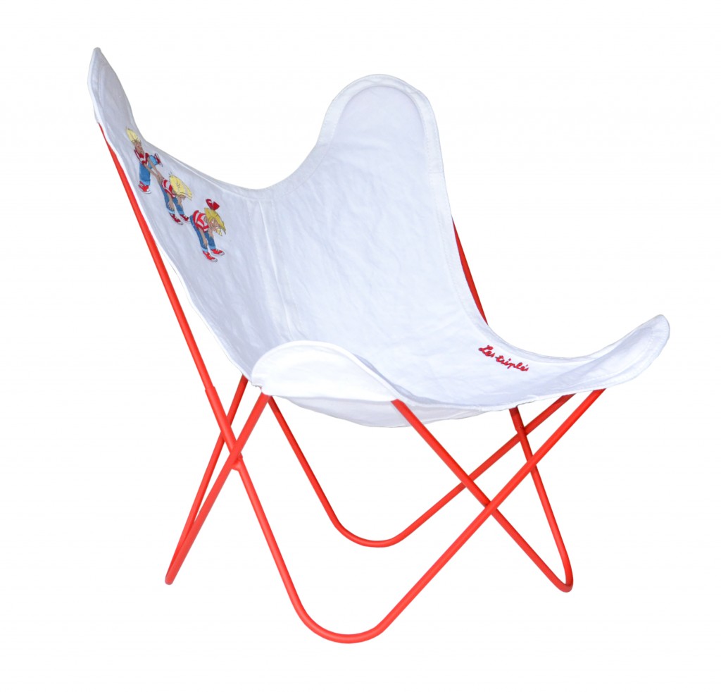 Un fauteuil quasi historique (dessin original anglais en 1855) ; une assise emblématique dès 1895 pour les militaires américains et reprise par l’armée italienne en Libye ; trois charmants bambins espiègles sous le coup de patte de la dessinatrice Nicole Lambert : il n’en fallait pas moins pour faire une délicieuse association.