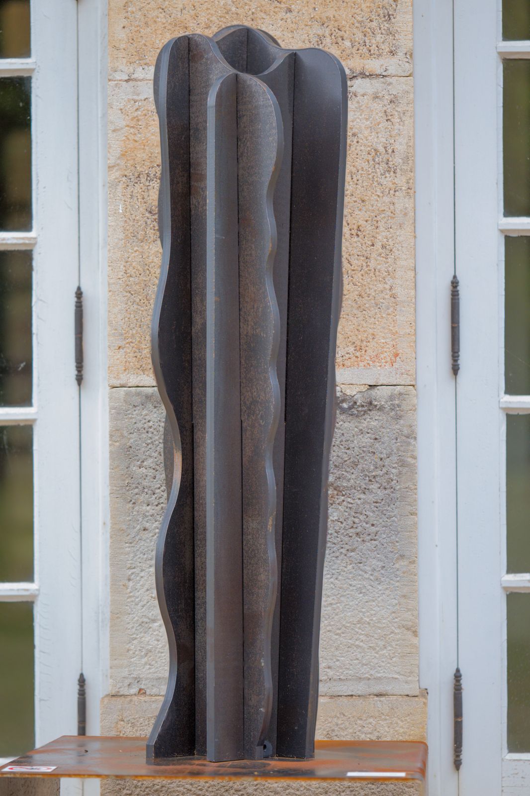 Architecte de métier, Christine de Buhan a longtemps construit pour les autres avant de créer pour elle-même. Avec ses sculptures en acier, elle ouvre aujourd’hui un espace plus instinctif, plus direct, presque méditatif. Sous le nom de Mima, elle façonne des œuvres monumentales où la lumière traverse la matière et où le vide devient aussi important que le plein.