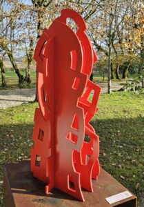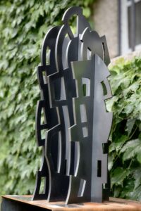 Je me suis fixé quelques règles : travailler l’acier, éviter la soudure, créer des œuvres monumentales mais démontables, adaptables à différents espaces. Ensuite, je laisse faire le geste. Je pars sans idée précise. La forme émerge d’elle-même, mon travail s’apparente à l’écriture automatique.