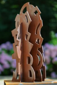 Des sculpteurs comme Consagra, Venet ou les artistes basques – Chillida, Oteiza et Arregui – m’ont profondément marquée. Leur façon de travailler la masse, le vide, la tension dans l’espace m’a donné envie de franchir le pas. Comme en architecture, mes pièces ressemblent parfois à de petites constructions : je parle d’ailleurs de « micro-architectures métalliques ».