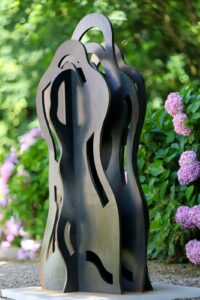 Les sculptures dialoguent avec les vignes, la pierre et la lumière, créant une promenade artistique à ciel ouvert où métal, nature et patrimoine se répondent.