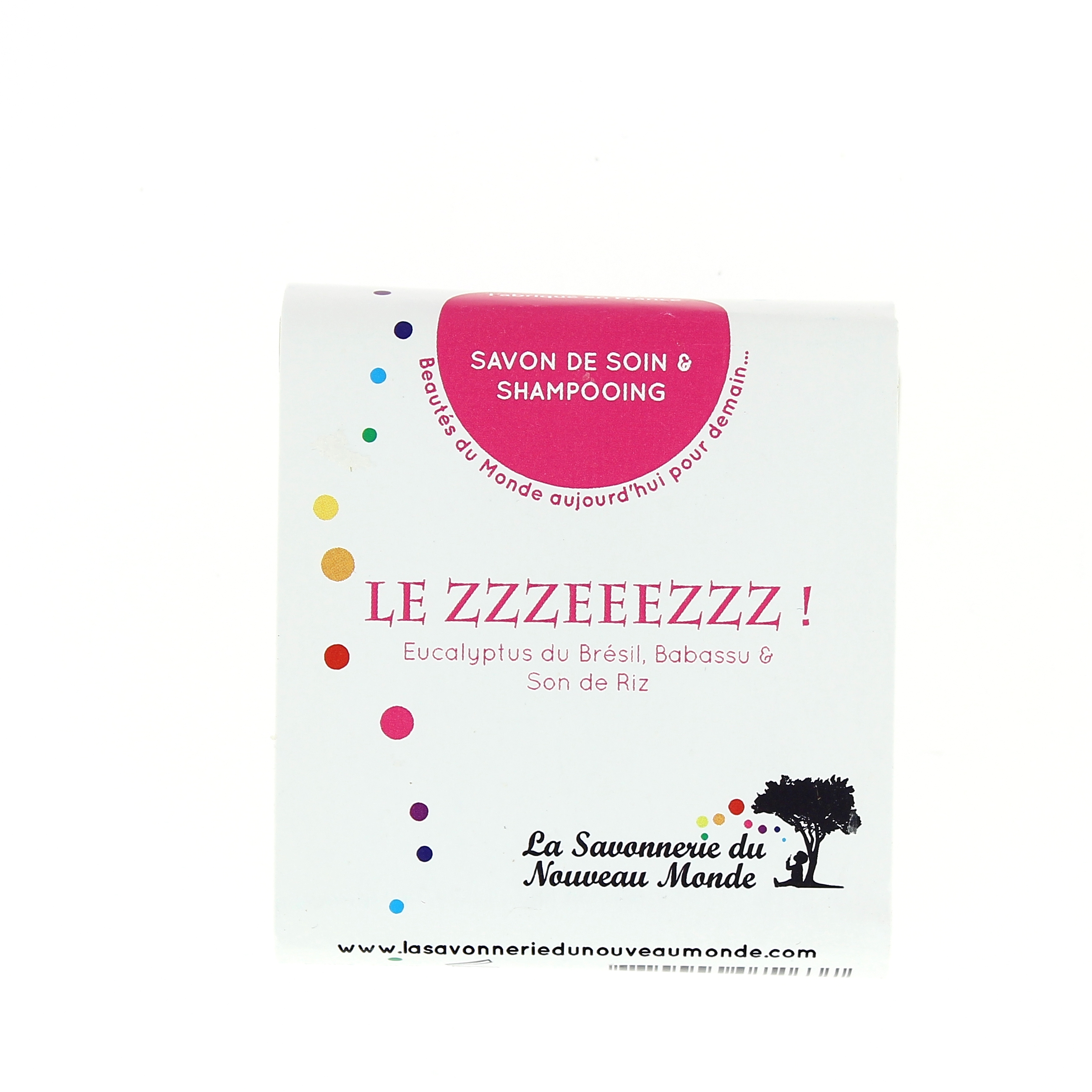 Dans la marque Doux Good, La Savonnerie du Nouveau Monde propose ZZZEEEZZZ, un savon surgras qui est en même temps un shampooing solide. Fabrication artisanale et saponification à froid pour ce produit composé d’eucalyptus, de son de riz et de babassu.