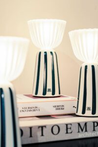 Une base écru baignée de lumière, traversée de rayures Bleu Sarah, teinte signature de la Maison Sarah Lavoine ; un graphisme (la structure est en métal, le diffuseur en polyéthylène ambré) à la fois solaire et affirmé. dans son mouvement dansant ; un léger basculement et la lumière affleure pour les soirées à ciel ouvert, les grandes tablées d’été, les terrasses urbaines comme les jardins confidentiels.