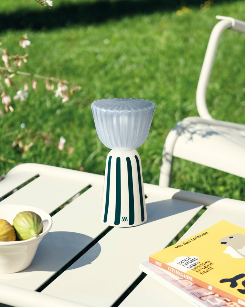 Designé par Tristan Lohner, Maison Sarah Lavoine et Fermob présentent une nouvelle édition limitée Printemps-Été 2026 de la lampe Swiing.