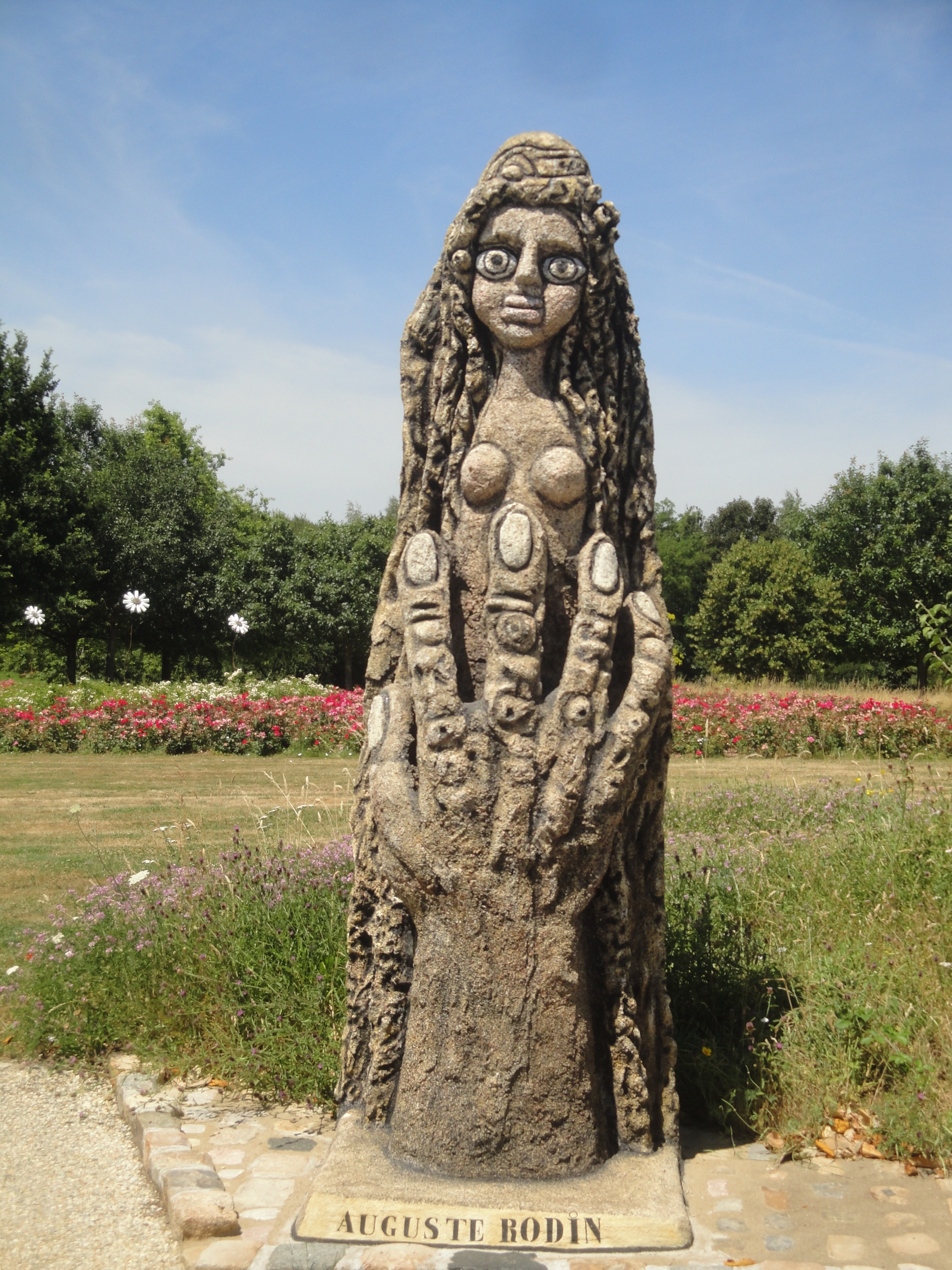 Passé la belle voûte d’arbres qui protège des feux brûlants du soleil, le musée s’ouvre sur l’allée des géants, une voie où de gigantesques personnages témoignent de l’admiration de Tatin pour les compagnons du devoir, pour ses amis, pour des artistes du Montmartre de l’époque : Gauguin, Rodin, Seurat, Toulouse-Lautrec, Jarry, Breton, Rembrandt, Goya, Delacroix…