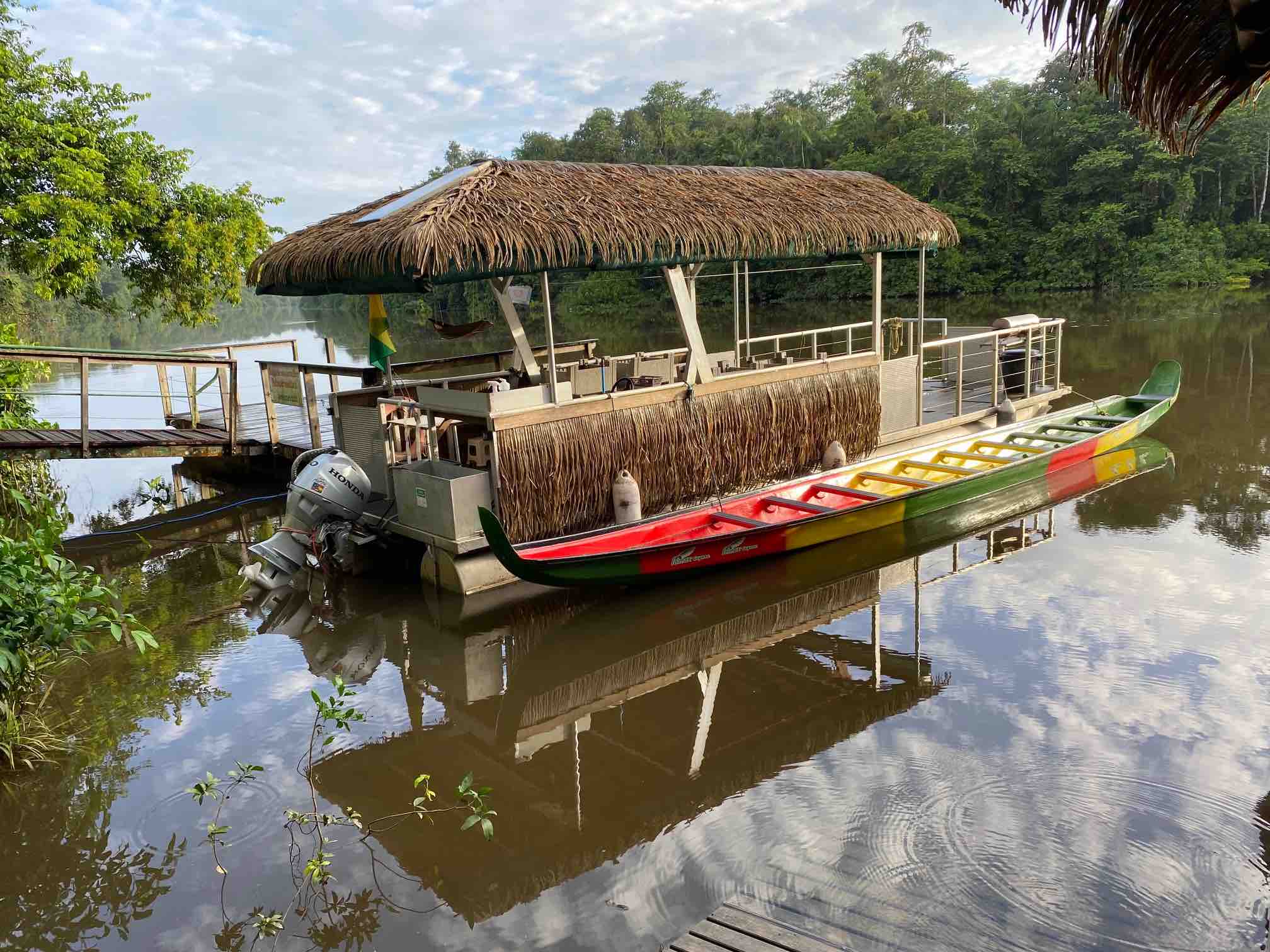Nos instructeurs ont insisté sur la nécessité de se concentrer et de ne pas faire de mouvements brusques car ce sont des embarcations plutôt instables. Message reçu 5 sur 5. Personne n’est passé à la baille, sauf à l’issue de notre balade sur ce fleuve Kourou, large, puissant qui semble dissimuler un monde mystérieux. De fait, en Amazonie, les fleuves sont le royaume du jaguar, de l’anaconda, de gros poissons et des loutres géantes. A noter que ces dernières ne craignent même pas le félin tacheté aux mâchoires et coup de patte redoutables. Mais à Maripas, la baignade est sans inquiétude et on en a bien profité.