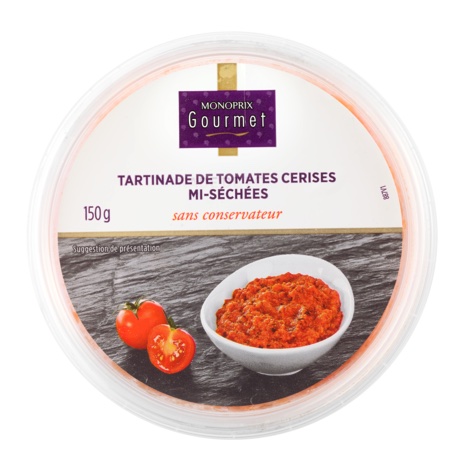 Les noix de cajou sont à 2, 49 € les 100 g ; les 100 g de pop-corn au thym à 2, 99 € les 100 g ; le concassé de tomates à 3, 49 € les 150 g ; Monoprix.