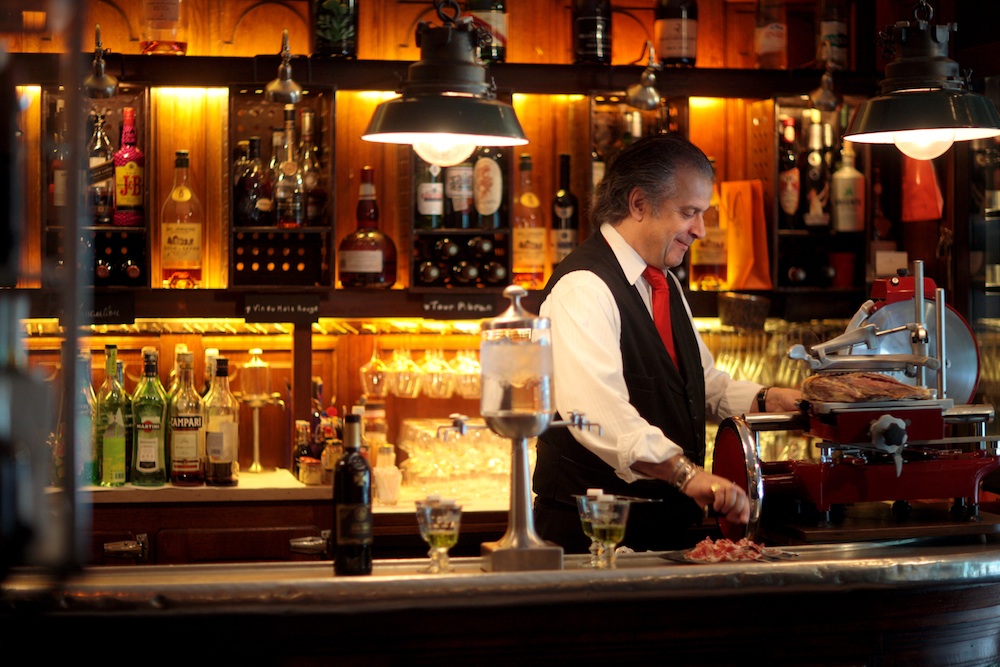 A l’image des lieux qui traversent le temps insensibles aux modes passagères, le personnel à L’Absinthe est du personnel comme on les aime : des gens qui connaissent et aiment leur métier à l’opposé de celles trop nombreuses des adresses branchées où le physique est largement prioritaire. Rien de plus énervant qu’un bon restaurant où le service est assuré par des gambettes fort belles au demeurant mais dont la propriétaire ne fait pas la différence entre une sole et un bar.