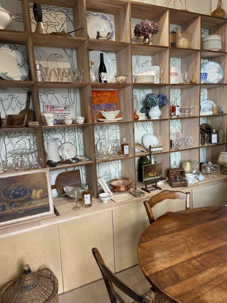 La décoration est pleine de charme avec ses anciens peignes en bois pour ramasser les myrtilles, ses chaussures à crampons pour ‘déshabiller’ les châtaignes. Il faut dire que le fondateur de cette « Ardèche à Paris », Laurent Haond a des liens affectifs indéfectibles avec ce territoire et qu’il a apporté dans la boutique des objets et souvenirs personnels de petit mobilier.