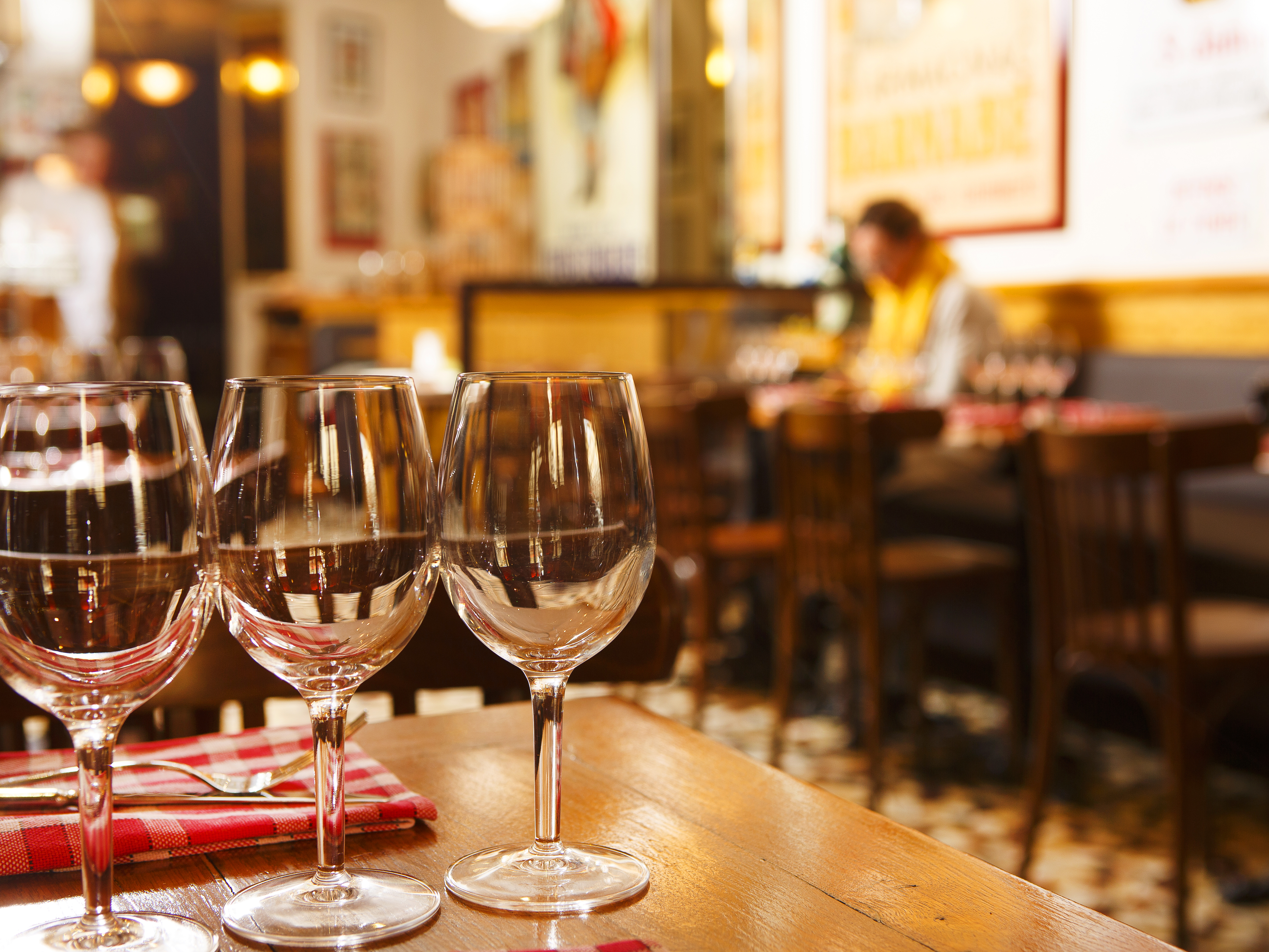 Ce bistrot est resté dans son jus d’antan : comptoir en zinc, mosaïques géométriques au sol, affiches publicitaires anciennes, plaques de boucherie…. pour quelques 38 couverts.