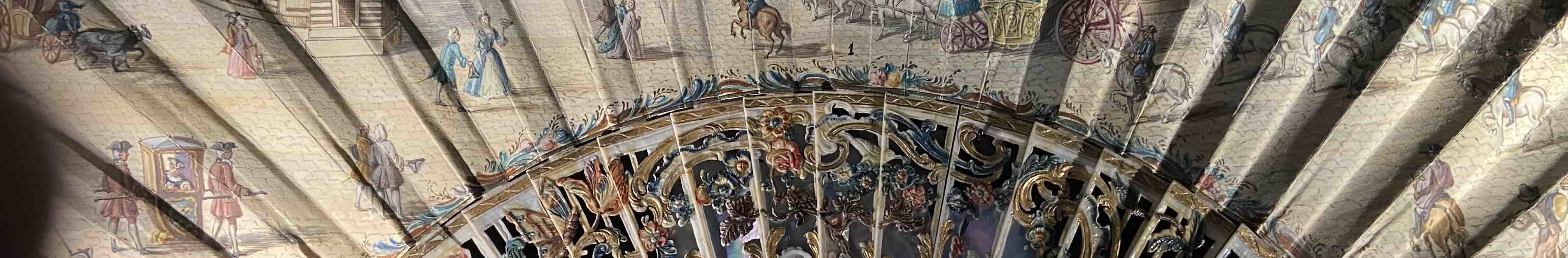 en ouverture de sujet visuel d’un éventail (vers 1750) avec vue du château de Versailles