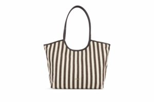 Ces boutiques de maroquinerie présentent le sac en toile Milan ébène à rayures, 110 € ; www.nat-nin.com