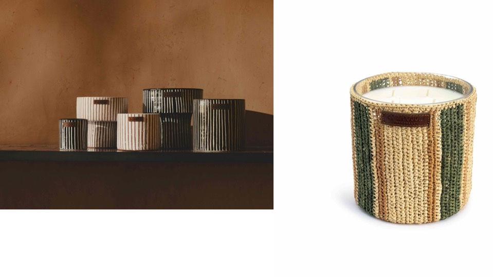 Beaucoup d’influence méditerranéenne et marocaine pour ces bougies réalisées en cire de soja avec une mèche en coton italien et un ‘parfumage’ réalisé à Grasse.