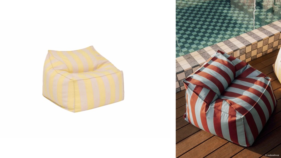Idéal pour l’extérieur et en bordure de piscine, ce pouf Lenny fabriqué en Espagne.