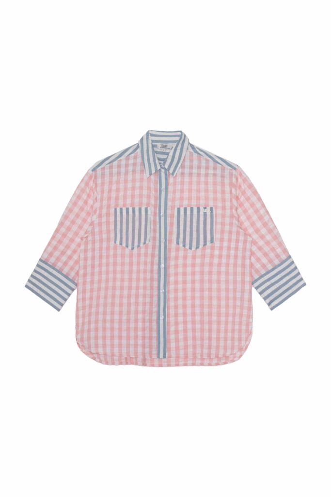 Blouse vichy rose et bleue Chouchou en coton seersucker.