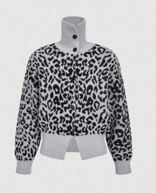 Cardigan casual vintage à imprimé léopard, boutonnage simple pour femme.
