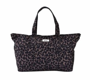 Pour les mamans qui bougent avec leur bébé, un sac à langer au motif léopard.