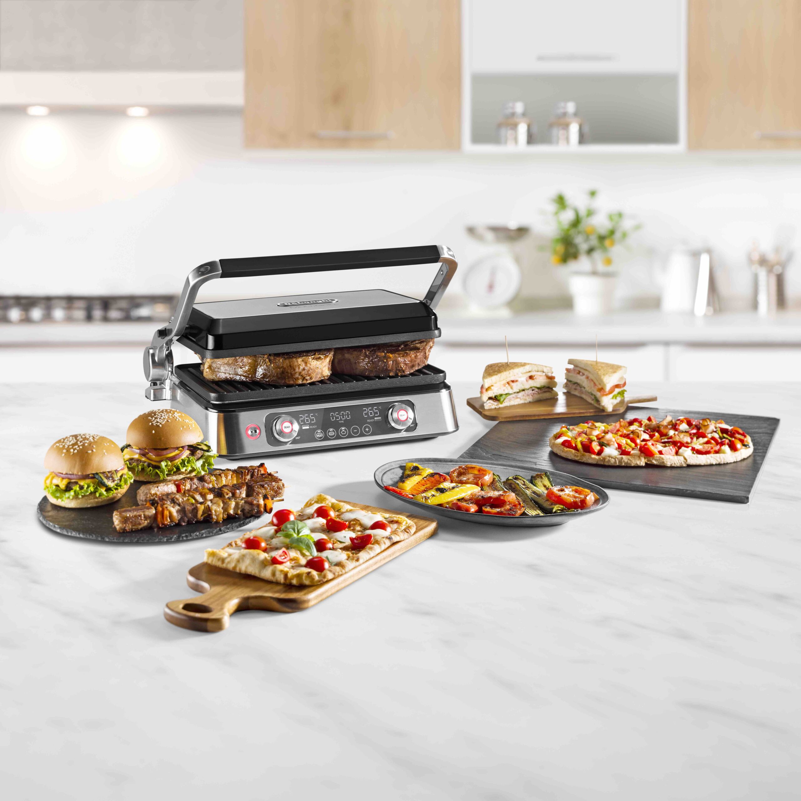3 positions différentes de chauffe, 3 types de plaque pour réaliser des burgers, des grillades de viandes et poissons, des gaufres et pancakes, des sandwichs croustillants.