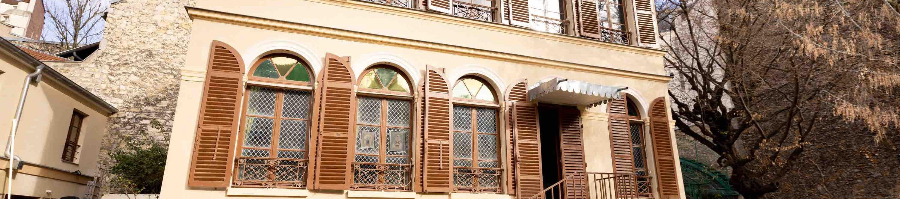 On a su garder lui conserver son atmosphère de maison d’artiste de l’époque romantique, celle du peintre Ary Scheffer. Mis aux normes actuelles côté performances énergétiques et conservation des œuvres à l’intérieur des pièces, le bâtiment classé Monuments Historiques a été magnifié par des travaux de charpente, de toiture et de façades. Ces dernières ont repris leur enduit traditionnel à la chaux dans leur couleur traditionnelle ; tout comme les volets dans leur teinte brun-beige.