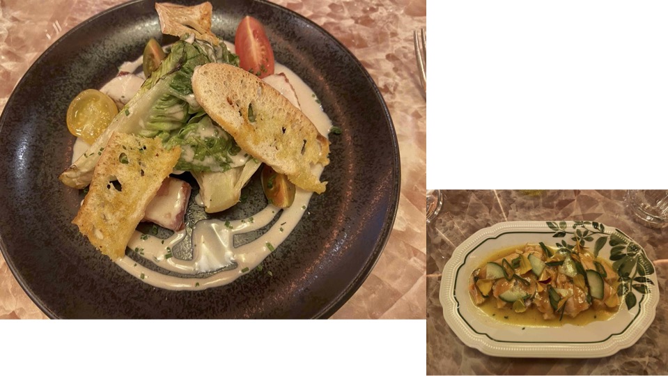 Ne vous précipitez pas, même si elle est excellente, sur la grosse boule de pain à tremper dans un godet d’huile d’olive : les 3 portions qui suivent sont généreuses et esthétiques.
