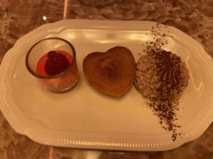 L’offre sucrée gagnerait à être étoffée : un seul choix possible, celui d’un financier un peu gras avec une quenelle de Chantilly un peu fade.