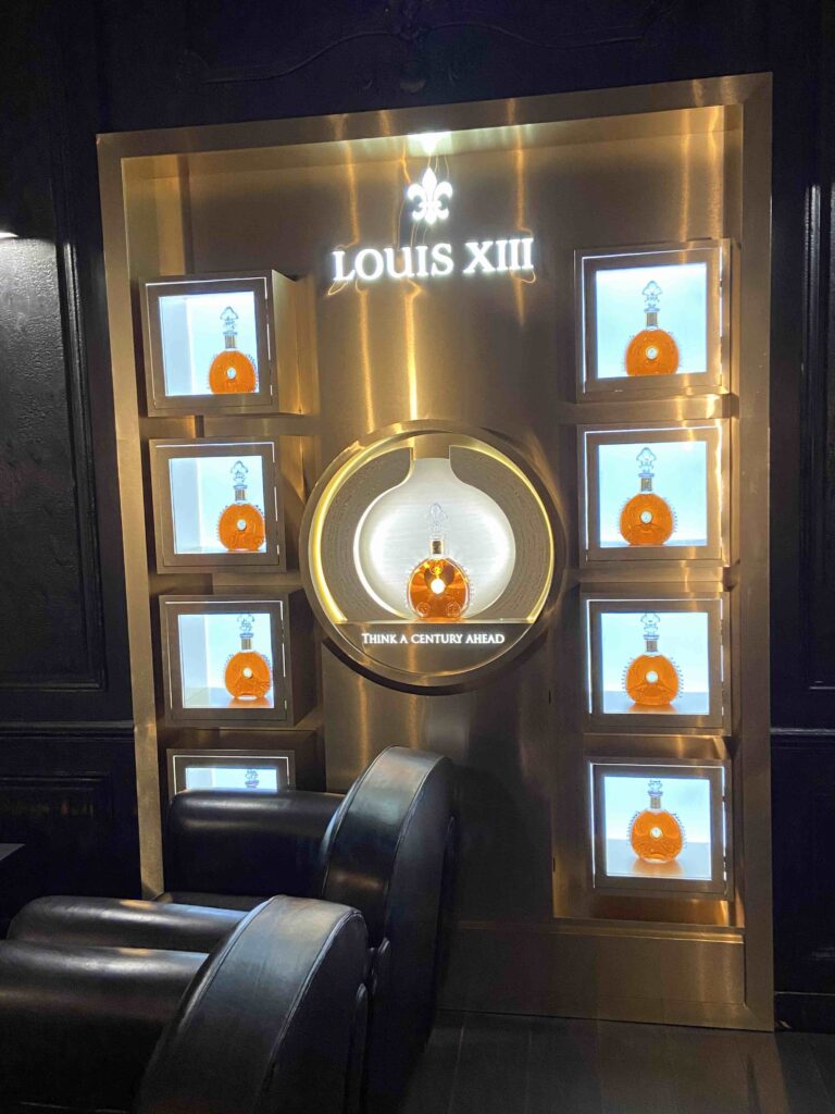 Devant travailler l’après-midi, je n’ai même pas jeté un œil à la carte des vins : toutes mes excuses donc. Mais au regard des ‘décorations’ de la terrasse et du bar avec des vitrines entières du très prestigieux cognac Louis XIII (maison Rémy Martin), il y a tout lieu de penser que le restaurant s’y connait en vins et spiritueux !!!