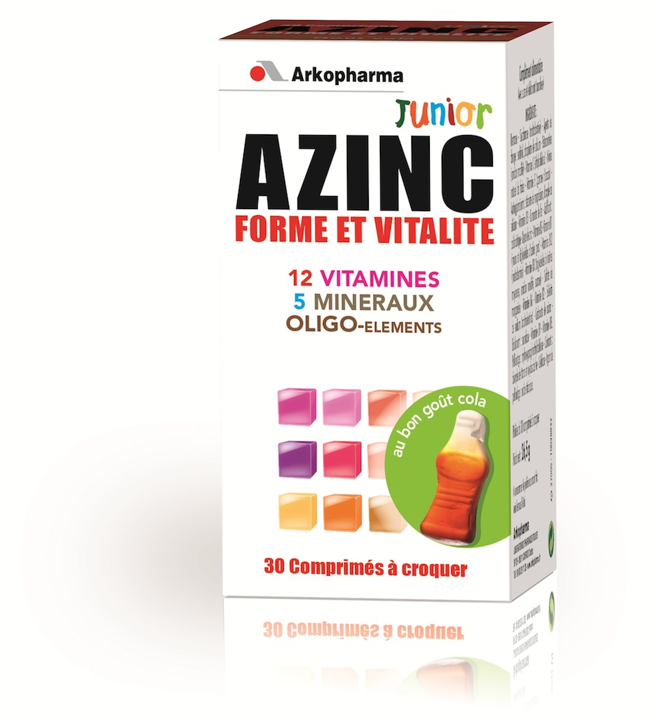 C’est le plein d’énergie pour toute la famille avec des produits forme et vitalité pour les adultes et d’autres adaptés aux juniors. Solution buvable, comprimé à croquer, gélule effervescente, dosette à boire ; « nature » pur les adultes et les ados, goût cola, fraise et chocolat pour les plus jeunes : la panoplie Azinc est large et se compose de 12 vitamines, 7 minéraux et d’oligo-éléments. Leur but : réduire la sensation de fatigue, lutter contre le stress et les baisses de tonus, renforcer les immunités naturelles. De 6, 50 à 13, 40 € ; en pharmacies et parapharmacies.