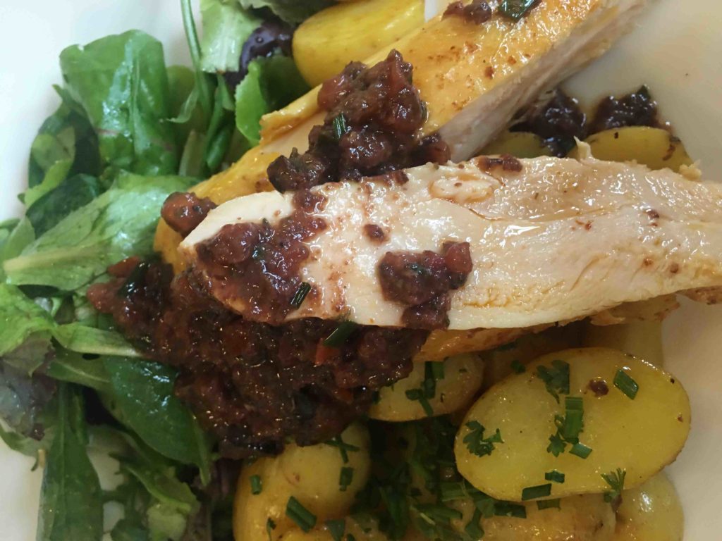 en ouverture visuel du filet de poulet cuit ç basse température et pommes grenailles