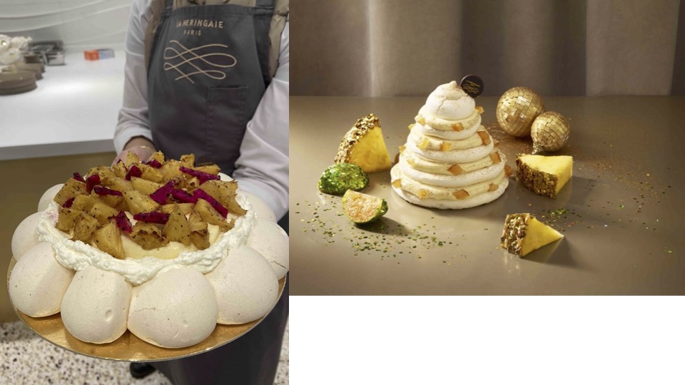 Au choix 2 belles bûches, l’Yseult qui fait flirter des morceaux de fruit du dragon et d’ananas avec un crémeux kalamensi ; ou le sapin qui superpose plusieurs tranches de meringue avec ce même crémeux et des morceaux d’ananas vanillé et des zestes de citron confit