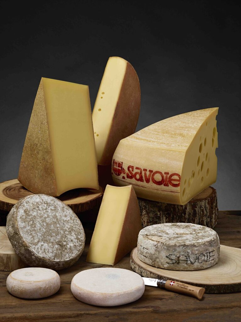 Plus riche encore que la Normandie la Savoie est réellement un pays de fromages avec 5 AOP (Beaufort, reblochon, chevrotin, tome des Bauges et Abondance) et 3 IGP (Emmental, tomme et raclette).