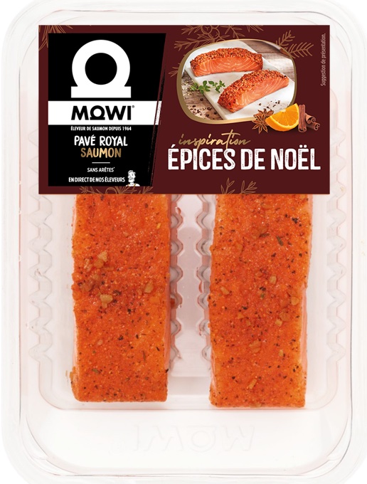 Au choix, du saumon non fumé aux épices de Noël dont la cannelle, l’orange (à manger cru comme un gravlax) ou des pavés de saumon aussi assaisonnés d’épices réconfortantes (à poêler quelques minutes).